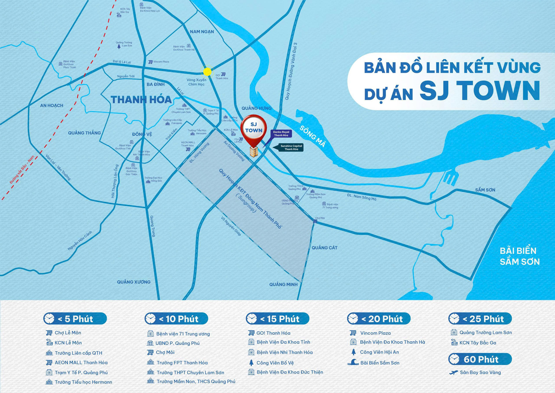 Tọa lạc tại khu vực phát triển năng động phía Đông KCN Lễ Môn, SJ Town được quy hoạch như một khu ở hoàn chỉnh, đồng bộ và giàu tính kết nối, nơi hội tụ đầy đủ các tiện ích nội khu thiết yếu phục vụ đời sống hàng ngày. Từ công viên cây xanh, đường dạo bộ, khu vui chơi trẻ em, sân thể thao đa năng đến nhà sinh hoạt cộng đồng và bãi đỗ xe quy hoạch riêng, mọi không gian đều được bố trí khoa học, thuận tiện và an toàn.